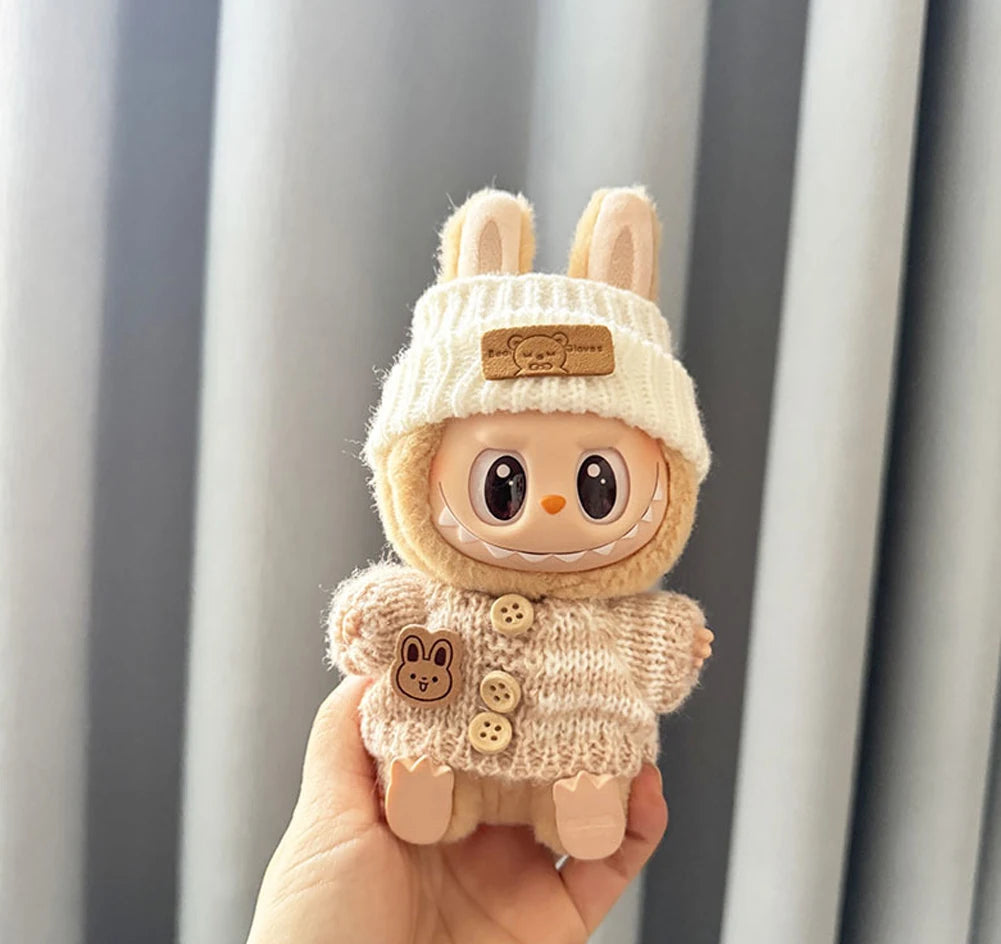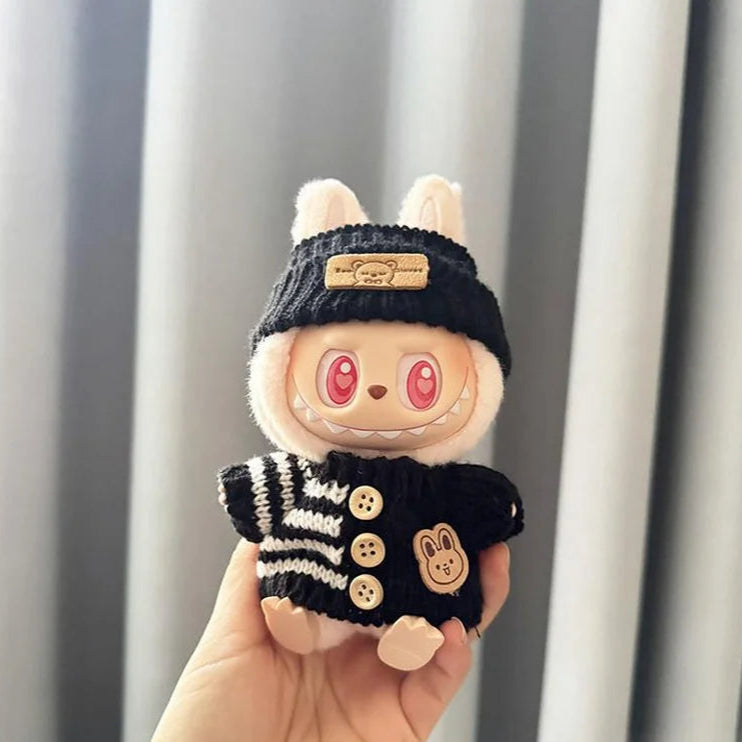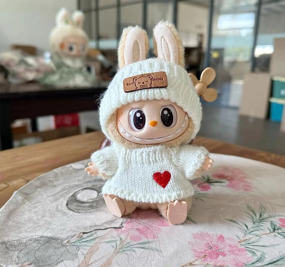 Give your 17 cm Labubu the ultimate tiny closet flex with this handmade Heart Cozy Knit Sweater Set.