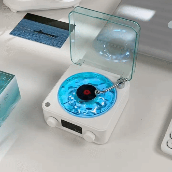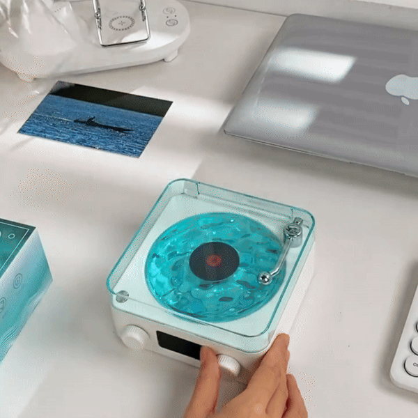 Aesthetic Appeal: The transparent water ripple turntable spins with the music, casting a mesmerizing glow and creating a stunning atmosphere in any room. The screen-off design ensures the light is not too bright at night, and you can easily wake up the screen with a simple tap or vibration.